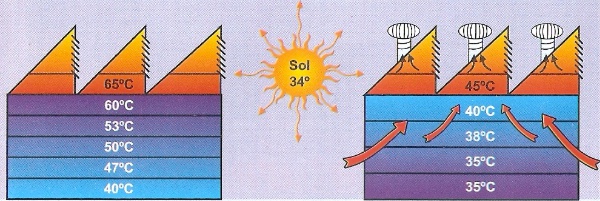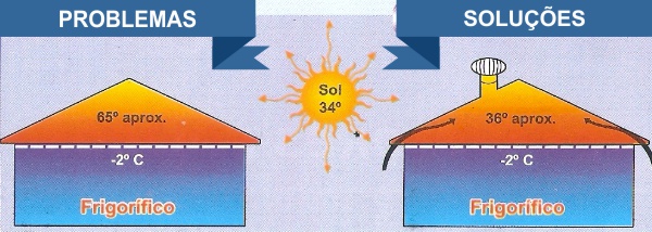 O espaçamento correspondido entre o forro e o telhado acumula calor ultrapassando em alguns casos os 65°C ocasionando um alto diferencial de temperatura, condensação e sobrecarga nos equipamentos de refrigeração.